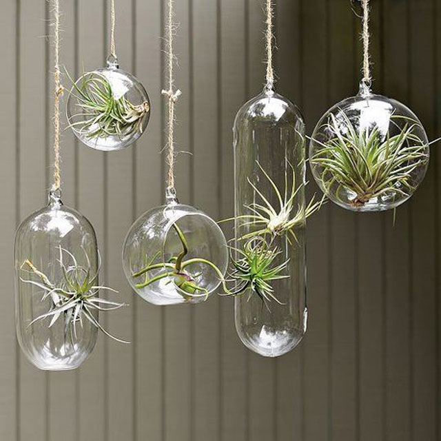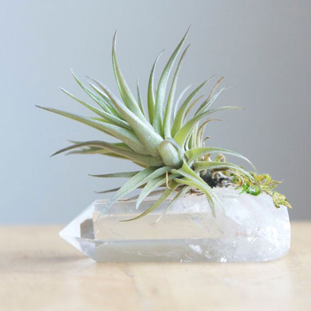 空氣鳳梨不用土就能活,所以對于花器的選擇性很大。任何物品都有可能成為一個獨具個性的花器。例如枯木、貝殼、假水晶等都是不錯的容器。