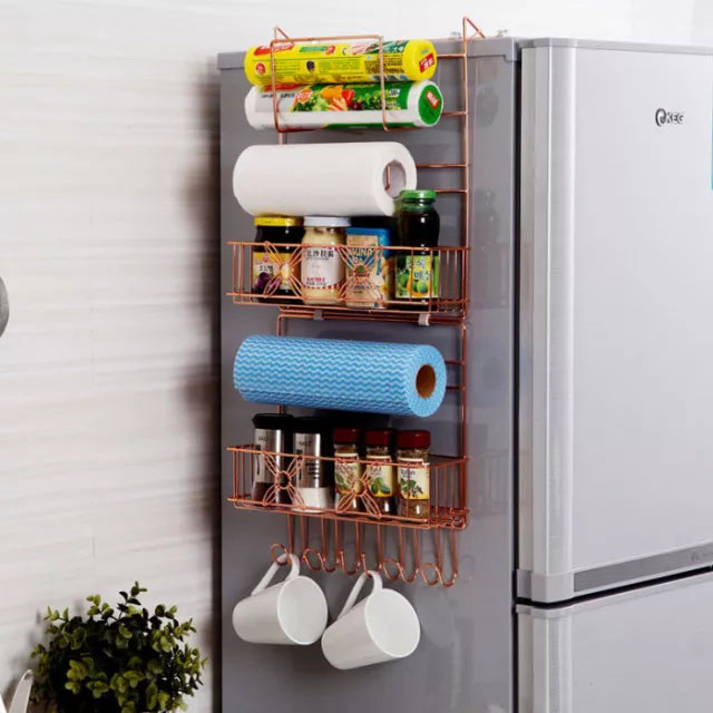 有像下圖這種的冰箱置物架,根據(jù)冰箱的高矮,可以選擇相匹配的置物架,大大提升了收納效果。