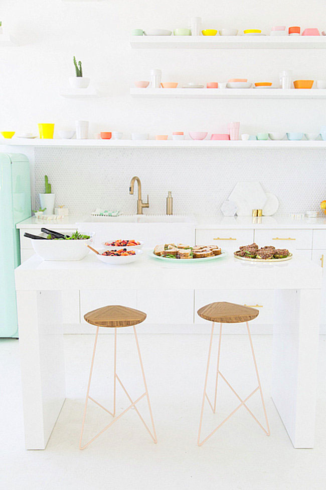 廚房以純白為背景色,通過碗碟的配色融入一抹抹彩虹。生活之所以多彩,是因?yàn)槿擞闷卟实男木滁c(diǎn)亮了他們。MORE INSP