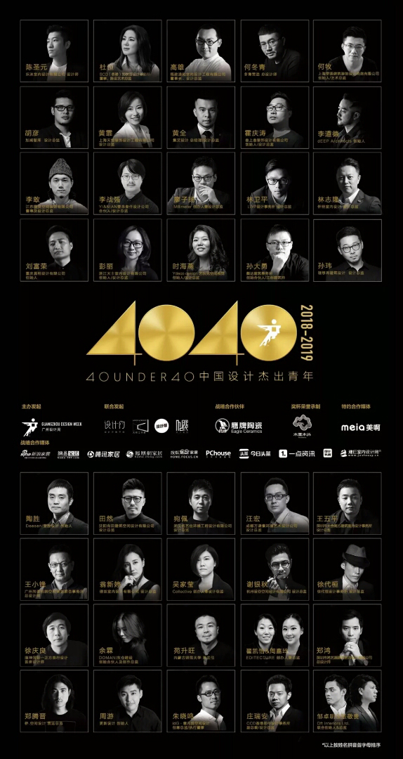 經(jīng)歷火熱的"城市榜""省區(qū)榜"層層嚴(yán)格篩選,鄭鴻先生最終榮登“40 UNDER 40 中國設(shè)計杰出青年(2018-2019)”全國榜單。